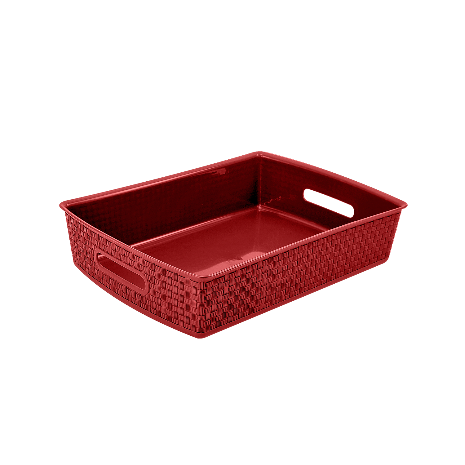 Nueva Canasta Ratán de 12 litros. Esta canasta plástica ratán está diseñada con dos espacios a cada lado para un agarre fácil y práctico. Organiza, almacena y optimiza espacios, ideal para usarla en las habitaciones, baño, estudio, closets, lavandería, etc. Puede usarse junto al Gavetero Organízate.